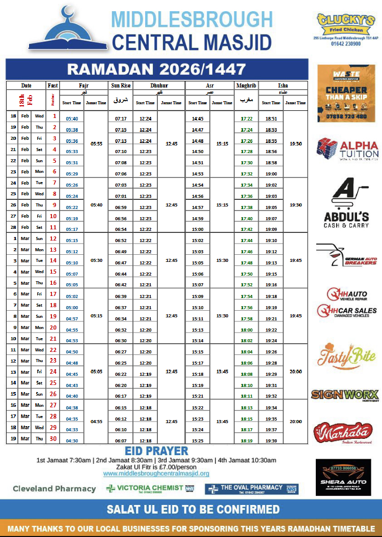 Ramadhan 2026 Calendar